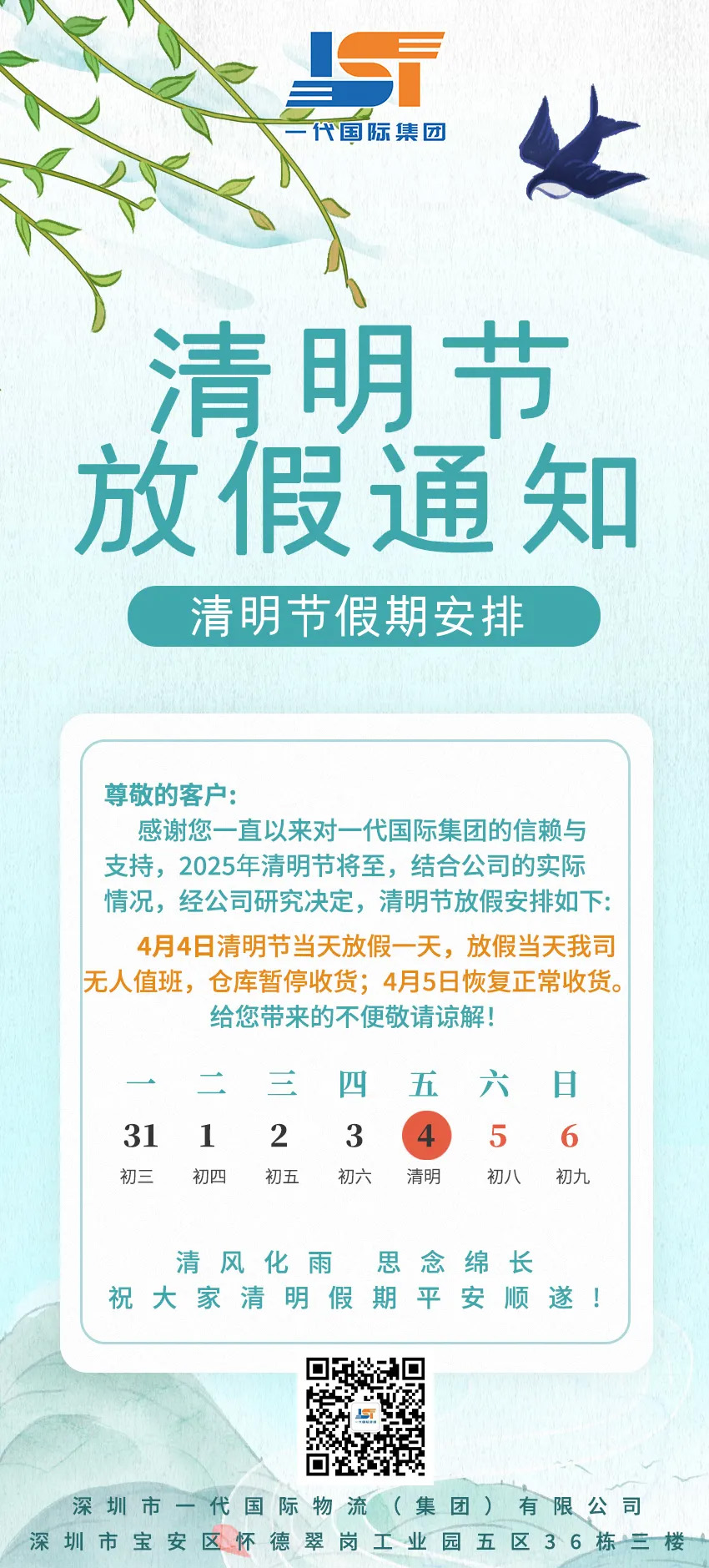 一代国际集团2025《清明节放假通知》